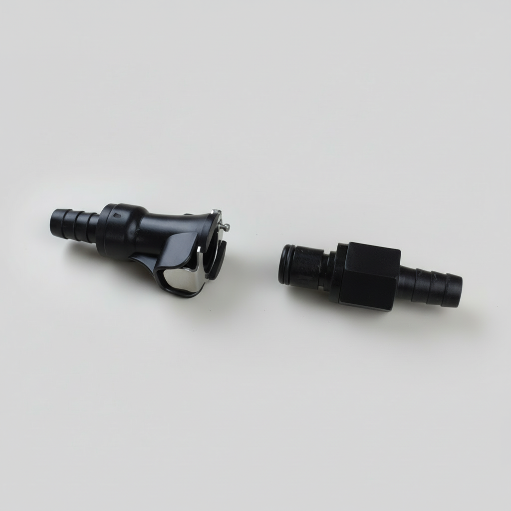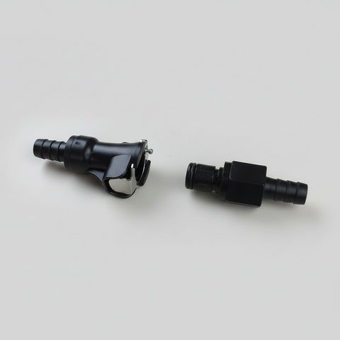 Un simple coupleur de tuyau de carburant en ligne permet un retrait rapide et sûr du réservoir d'essence sans déversement de carburant. Chaque extrémité du coupleur comporte un mécanisme de soupape qui permet l'écoulement du carburant lorsque le coupleur est fixé, mais isole instantanément le carburant lorsque le coupleur est relâché.