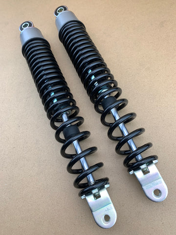 Les amortisseurs sont noirs avec un revêtement chromé, visible sur la photo. Vous recevrez les mêmes amortisseurs que sur la photo.