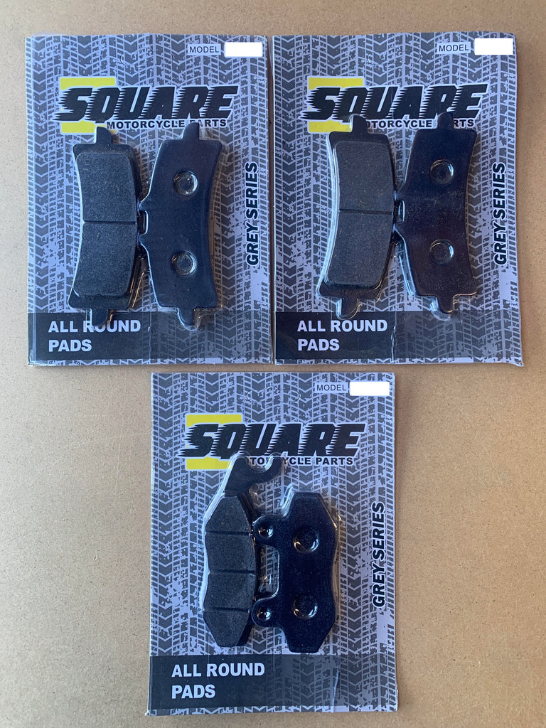 L'ensemble comprend les plaquettes de frein avant gauche, avant droite et arrière.
