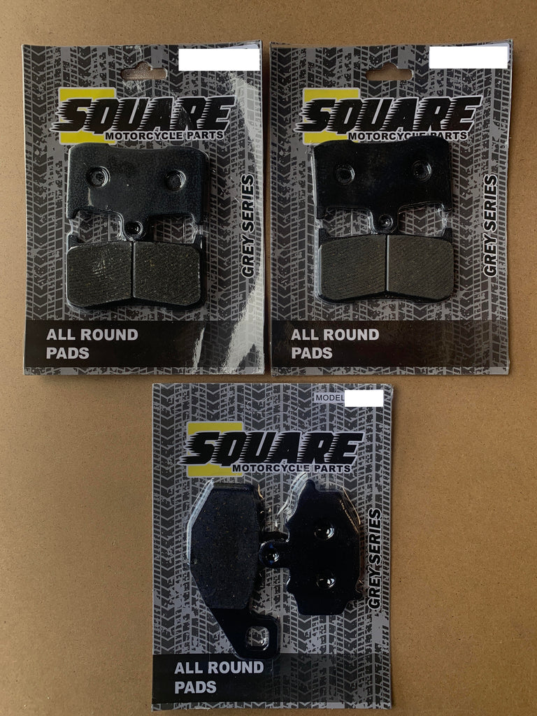 L'ensemble comprend les plaquettes de frein avant gauche, avant droite et arrière.