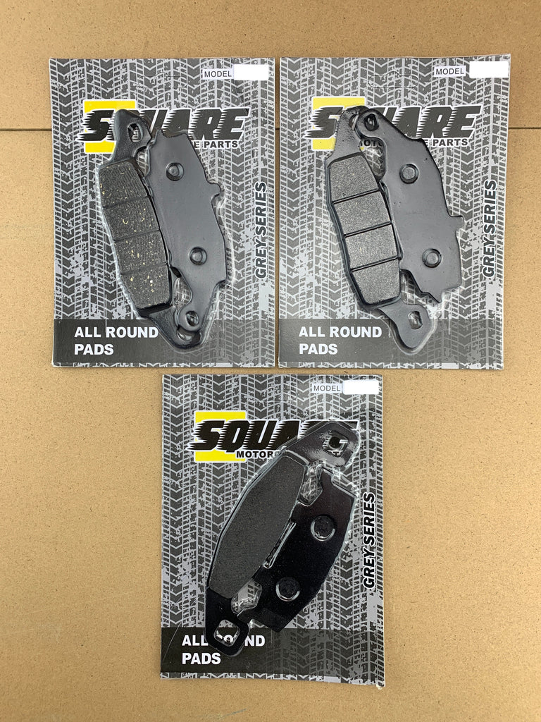 L'ensemble comprend les plaquettes avant gauche, avant droite et arrière, comme indiqué sur les images.