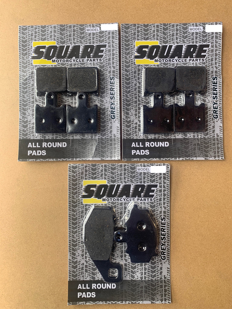 L'ensemble comprend les plaquettes de frein avant gauche, avant droite et arrière.