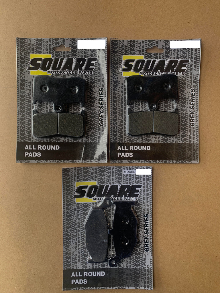 L'ensemble comprend les plaquettes de frein avant gauche, avant droite et arrière.