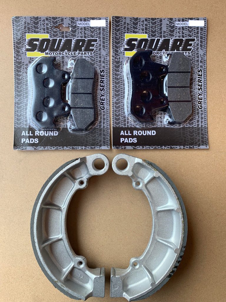 Ce jeu de plaquettes de frein avant et de mâchoires de tambour de frein arrière a été fabriqué pour remplacer les jeux de freins d'origine sur une Honda CB750. pour les années et les modèles indiqués ci-dessus.