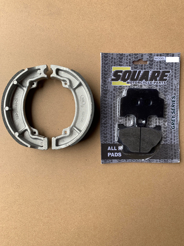 Cet ensemble de plaquettes de frein avant et de mâchoires de tambour de frein arrière a été fabriqué pour remplacer les ensembles de freins d'origine d'une Yamaha RD125 pour les années et les modèles indiqués ci-dessus.