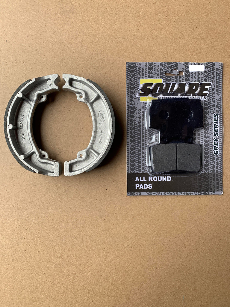 Cet ensemble de plaquettes de frein avant et de mâchoires de tambour de frein arrière a été fabriqué pour remplacer les ensembles de freins d'origine d'une Yamaha RD125 pour les années et les modèles indiqués ci-dessus.