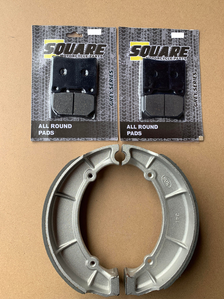 Cet ensemble de plaquettes de frein avant et de mâchoires de tambour de frein arrière a été fabriqué pour remplacer les ensembles de freins d'origine d'une Yamaha XV700 pour les années et les modèles indiqués ci-dessus.