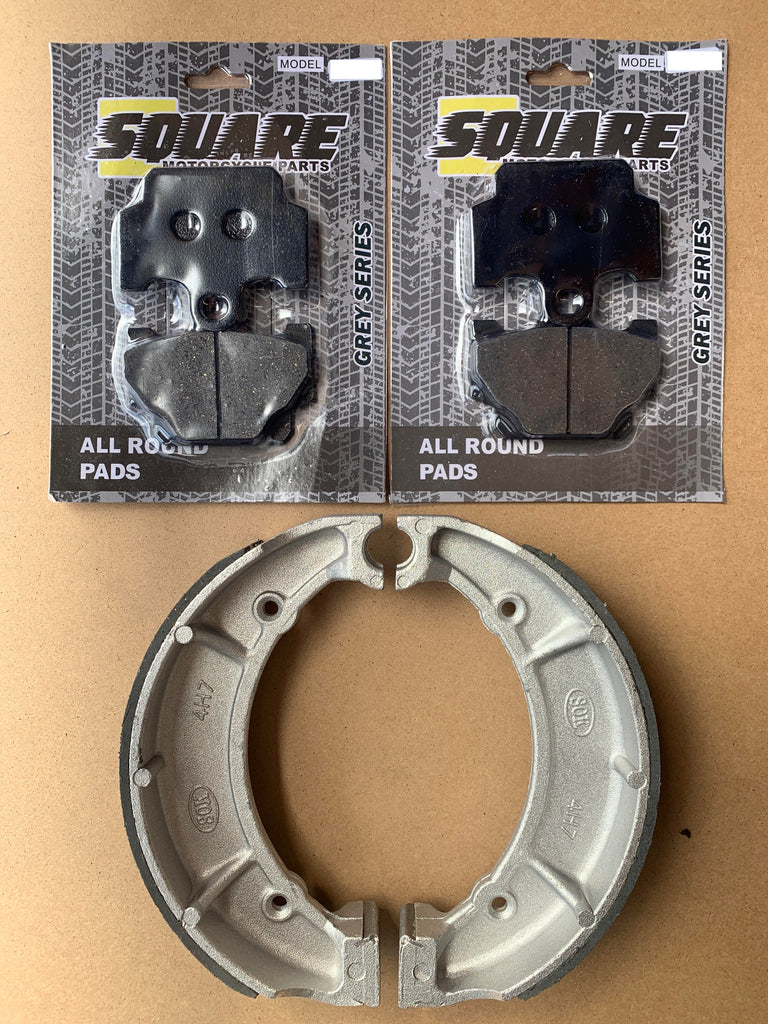 Cet ensemble de plaquettes de frein avant et de mâchoires de tambour de frein arrière a été fabriqué pour remplacer les ensembles de freins d'origine d'une Yamaha XZ550 pour les années et les modèles indiqués ci-dessus.