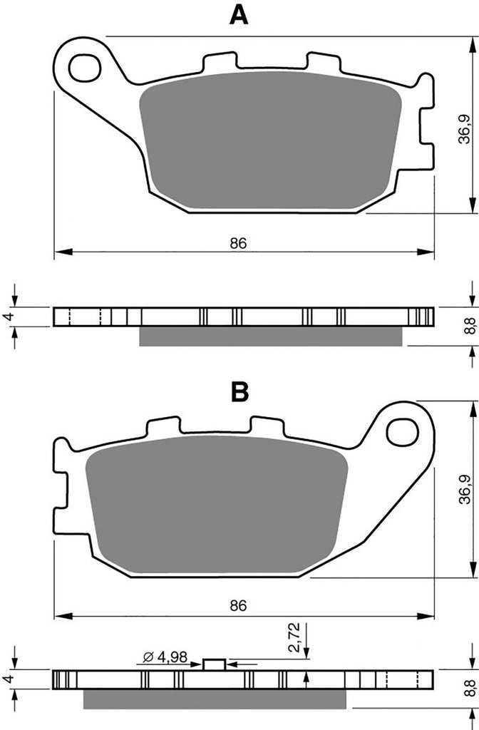 Le composé AD offre une faible abrasion du disque de frein et un freinage beaucoup plus silencieux grâce à sa matière composite. Ces plaquettes offrent d'excellentes performances sur tous les terrains et dans toutes les conditions, constituant ainsi une gamme polyvalente de plaquettes performantes.