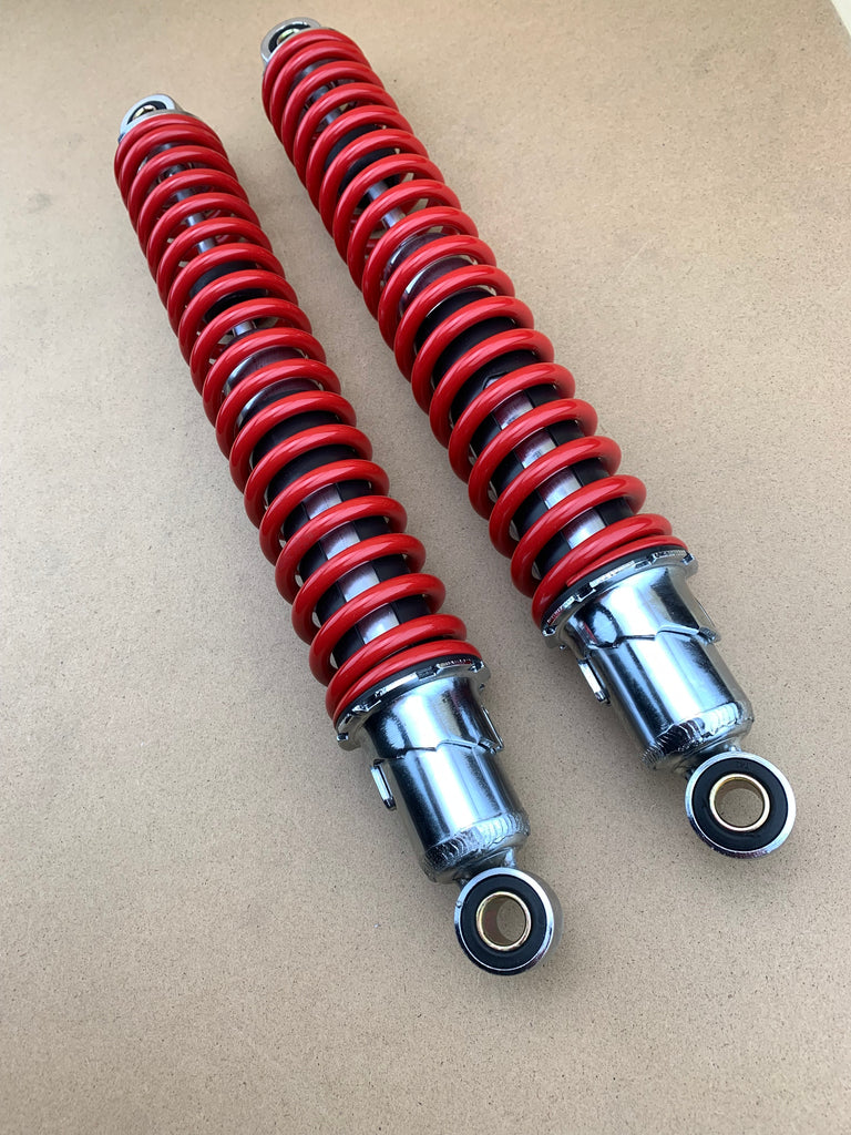 Les amortisseurs / amortisseurs ont des points de montage de 400 mm, avec une goupille supérieure de 10 mm et une goupille inférieure de 12 mm que vous pouvez changer si nécessaire.