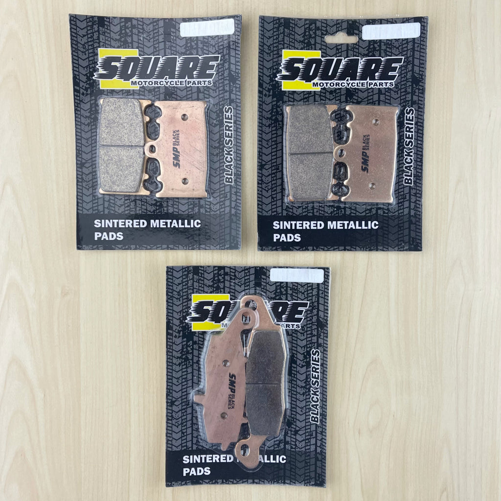 Les plaquettes avant gauche, avant droite et arrière sont incluses.