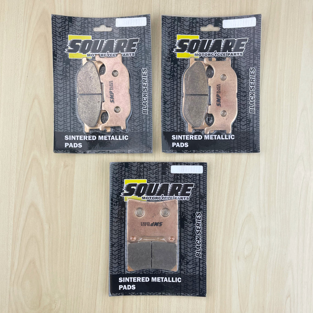 Les plaquettes avant gauche, avant droite et arrière sont incluses.