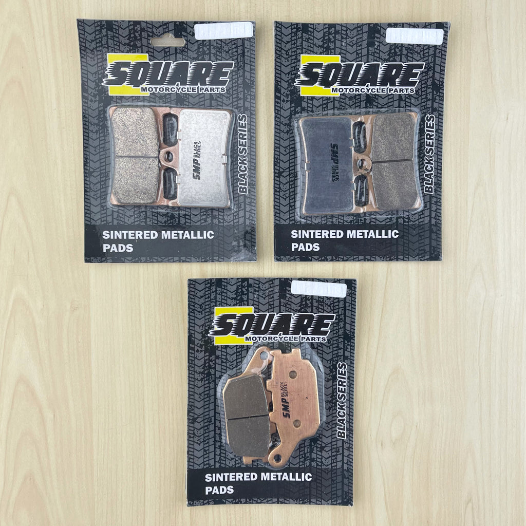 Les plaquettes avant gauche, avant droite et arrière sont incluses.